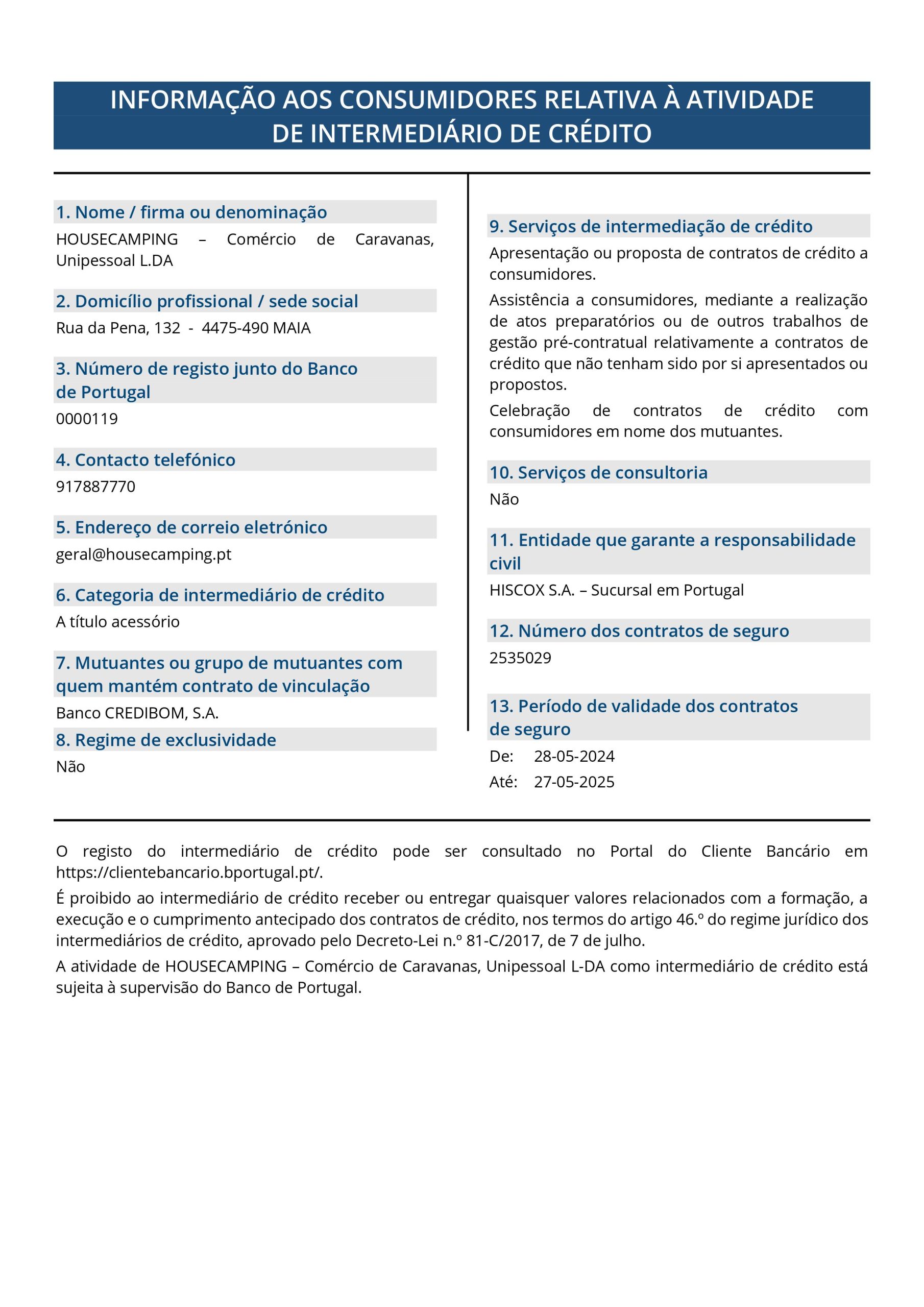 INFORMAÇÃO AOS CONSUMIDORES RELATIVA À ATIVIDADE